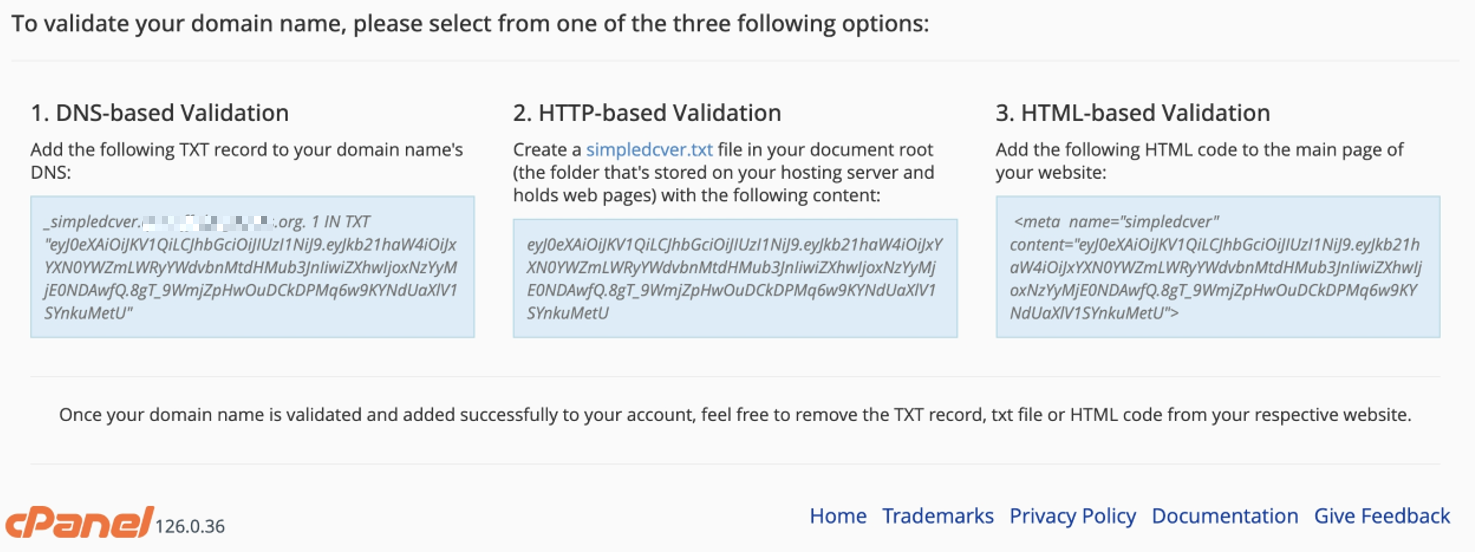 Domain name control validation