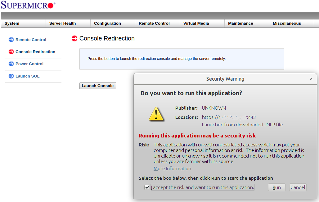 {"/api/v1/ncpl/currencies/getAll":{"body":[{"Name":"U.S. Dollar","Code":"USD","Symbol":"$","Separator":".","Culture":"en-US"},{"Name":"Euro","Code":"EUR","Symbol":"€","Separator":",","Culture":"en-US"},{"Name":"British Pound","Code":"GBP","Symbol":"£","Separator":".","Culture":"en-US"},{"Name":"Canadian Dollars","Code":"CAD","Symbol":"C$","Separator":".","Culture":"en-US"},{"Name":"Australian Dollars","Code":"AUD","Symbol":"A$","Separator":".","Culture":"en-US"},{"Name":"Indian Rupees","Code":"INR","Symbol":"Rs","Separator":".","Culture":"en-US"},{"Name":"China Yuan RMB","Code":"CNY","Symbol":"¥","Separator":".","Culture":"en-US"}],"status":200,"statusText":"OK"},"/api/v1/ncpl/usermanagement/uiuser/getHeaderUserInfo:\"{\\\"hideSupportPin\\\":true}\"":{"body":{"__ctxId":"0D422D45F51942E0AF49E2E28193D6A4","__isError":true,"__errorType":"Nc.Platform.Abstractions.UnauthorizedException","Http_WWW_Authenticate":"Bearer","StatusCode":"Unauthorized","LogLevel":3,"Message":"","InnerException":null,"HelpLink":null,"Source":"Nc.Security.Middleware"},"status":401,"statusText":"Unauthorized"},"/api/v1/ncpl/cart/user/getShoppingCartSummary:\"{\\\"finalTotalOnly\\\":true}\"":{"body":null,"status":200,"statusText":"OK"}}{"/api/v1/ncpl/simplekb/getarticle:\"{\\\"articleId\\\":10084,\\\"categoryId\\\":2188}\"":{"body":{"Id":10084,"FriendlyId":"","ArticleTypeId":0,"Title":"Resetting Dedicated server root password via Virtual Console","ArticleName":"Resetting Dedicated server root password via Virtual Console","ArticleSummary":null,"PreponedSummary":false,"Approved":true,"Body":"DQoJCTxwPg0KCQkJCTxhIGhyZWY9IiNsYXVuY2hfdmMiPg0KCQkJCQkJPGI+TGF1bmNoaW5nIHZpcnR1YWwgY29uc29sZTwvYj4NCgkJCQk8L2E+DQoJCTwvcD4NCgkJPHVsPg0KCQkJCTxsaT4NCgkJCQkJCTxwPg0KCQkJCQkJCQk8YSBocmVmPSIjc3VwZXJtaWNyb192YyI+U3VwZXJtaWNybyB2aXJ0dWFsIGNvbnNvbGU8L2E+DQoJCQkJCQk8L3A+DQoJCQkJPC9saT4NCgkJCQk8bGk+DQoJCQkJCQk8cD4NCgkJCQkJCQkJPGEgaHJlZj0iI2phdmFfY29uc29sZSI+SmF2YSBjb25zb2xlPC9hPg0KCQkJCQkJPC9wPg0KCQkJCTwvbGk+DQoJCQkJPGxpPg0KCQkJCQkJPHA+DQoJCQkJCQkJCTxhIGhyZWY9IiNodG1sNV9jb25zb2xlIj5IVE1MNSBjb25zb2xlPC9hPg0KCQkJCQkJPC9wPg0KCQkJCTwvbGk+DQoJCQkJPGxpPg0KCQkJCQkJPHA+DQoJCQkJCQkJCTxhIGhyZWY9IiNleGNlcHRpb25fc2l0ZV9saXN0Ij5BZGp1c3RpbmcgRXhjZXB0aW9uIFNpdGUgTGlzdDwvYT4NCgkJCQkJCTwvcD4NCgkJCQk8L2xpPg0KCQk8L3VsPg0KCQk8YnIgLz4NCgkJPHA+DQoJCQkJPGEgaHJlZj0iI2lEUkFDX3ZjIj4NCgkJCQkJCTxiPmlEUkFDIHZpcnR1YWwgY29uc29sZTwvYj4NCgkJCQk8L2E+DQoJCTwvcD4NCgkJPHVsPg0KCQkJCTxsaT4NCgkJCQkJCTxwPg0KCQkJCQkJCQk8YSBocmVmPSIjamF2YV9jb25zb2xlMiI+SmF2YSBjb25zb2xlPC9hPg0KCQkJCQkJPC9wPg0KCQkJCTwvbGk+DQoJCQkJPGxpPg0KCQkJCQkJPHA+DQoJCQkJCQkJCTxhIGhyZWY9IiNodG1sNV9jb25zb2xlMiI+SFRNTDUgY29uc29sZTwvYT4NCgkJCQkJCTwvcD4NCgkJCQk8L2xpPg0KCQk8L3VsPg0KCQk8YnIgLz4NCgkJPHA+DQoJCQkJPGEgaHJlZj0iI2FsbWFsaW51eDgiPg0KCQkJCQkJPGI+QWxtYWxpbnV4IDgvOTwvYj4NCgkJCQk8L2E+DQoJCTwvcD4NCgkJPHA+DQoJCQkJPGEgaHJlZj0iI3VidW50dTIyIj4NCgkJCQkJCTxiPlVidW50dSAyMjwvYj4NCgkJCQk8L2E+DQoJCTwvcD4NCgkJPGJyIC8+DQoJCTxiciAvPg0KCQk8cD4NCgkJCQk8YSBuYW1lPSJsYXVuY2hfdmMiPg0KCQkJCQkJPGI+TGF1bmNoaW5nIHZpcnR1YWwgY29uc29sZTwvYj4NCgkJCQk8L2E+DQoJCTwvcD4NCgkJPGJyIC8+DQoJCTxwPg0KCQkJCTxhIG5hbWU9InN1cGVybWljcm9fdmMiPg0KCQkJCQkJPGI+U3VwZXJtaWNybyB2aXJ0dWFsIGNvbnNvbGU8L2I+DQoJCQkJPC9hPg0KCQk8L3A+DQoJCTxiciAvPg0KCQk8YnIgLz4NCkluIGEgd2ViIGJyb3dzZXIsIHR5cGUgdGhlIDE5OC4xOS4xOS4yMCBJUCBhZGRyZXNzLCBhbmQgbG9nIGluIHVzaW5nIHRoZSBJUE1JIGFjY2VzcyBjcmVkZW50aWFscyBmcm9tIHlvdXIgV2VsY29tZSBlbWFpbC48YnIgLz48YnIgLz48aW1nIGNsYXNzPSJrYi1pbWFnZSIgc3JjPSJodHRwczovL05hbWVjaGVhcC5zaW1wbGVrYi5jb20vU2l0ZUNvbnRlbnRzLzItN0MyMkQ1MjM2QTQ1NDNFQjgyN0YzQkQ4OTM2RTE1M0UvbWVkaWEvZGVkaWMxLnBuZyIgLz48YnIgLz48YnIgLz4NCkRlcGVuZGluZyBvbiB0aGUgSVBNSSB2ZXJzaW9uLCB5b3Ugd2lsbCBoYXZlIHRoZSBvcHRpb24gdG8gbGF1bmNoIGEgSmF2YSBjb25zb2xlIG9yIGNob29zZSBiZXR3ZWVuIEphdmEgYW5kIEhUTUw1IGNvbnNvbGUuIFRoZSBkaWZmZXJlbmNlIGJldHdlZW4gdGhlc2UgdHdvIGlzIHRoZSBmb2xsb3dpbmc6PGJyIC8+PHVsPjxsaT5mb3IgdGhlIEphdmEgY29uc29sZSB0byB3b3JrIHByb3Blcmx5IHlvdSB3aWxsIG5lZWQgdG8gaGF2ZSBKYXZhIGluc3RhbGxlZCBvbiB5b3VyIGNvbXB1dGVyLCBhbmQgdGhlIGNvbnNvbGUgd2lsbCBiZSBsYXVuY2hlZCBpbiBhIHNlcGFyYXRlIHdpbmRvdzs8L2xpPjxsaT5IVE1MNSBjb25zb2xlIGlzIGxhdW5jaGVkIGluIGEgbmV3IGJyb3dzZXIgdGFiIGFuZCBpdCByZXF1aXJlcyBubyBhZGRpdGlvbmFsIHNvZnR3YXJlIGluc3RhbGxlZCBsb2NhbGx5LjwvbGk+PC91bD48YnIgLz4NClRvIGNoZWNrIHdoaWNoIGNvbnNvbGUgaXMgYXZhaWxhYmxlLCBnbyB0byA8Yj5SZW1vdGUgQ29udHJvbDwvYj4gwrsgPGI+Q29uc29sZSByZWRpcmVjdGlvbiAob3IgUmVtb3RlIENvbnNvbGUpPC9iPi4gSWYgdGhlcmUgaXMgb25seSBhIEphdmEgY29uc29sZSBhdmFpbGFibGUsIHlvdSB3aWxsIHNlZSBvbmx5IHRoZSBidXR0b24g4oCcTGF1bmNoIENvbnNvbGXigJ0uIElmIEhUTUw1IGlzIGFsc28gYXZhaWxhYmxlLCB5b3Ugd2lsbCBzZWUgdGhlIGZvbGxvd2luZyB0ZXh0IGFuZCB0aGUgb3B0aW9uIHRvIHN3aXRjaCBiZXR3ZWVuIGludGVyZmFjZXM6PGJyIC8+PGJyIC8+PGltZyBjbGFzcz0ia2ItaW1hZ2UiIHNyYz0iaHR0cHM6Ly9OYW1lY2hlYXAuc2ltcGxla2IuY29tL1NpdGVDb250ZW50cy8yLTdDMjJENTIzNkE0NTQzRUI4MjdGM0JEODkzNkUxNTNFL21lZGlhL2RlZGljMi5wbmciIC8+PGJyIC8+PGJyIC8+PHA+PGEgbmFtZT0iamF2YV9jb25zb2xlIj48Yj5KYXZhIGNvbnNvbGU8L2I+PC9hPjwvcD48YnIgLz4NClRvIGxhdW5jaCB0aGUgY29uc29sZSBjbGljayBvbiBhIGJsYWNrIHNjcmVlbiBpbnNpZGUgdGhlIDxiPlJlbW90ZSBjb25zb2xlIHByZXZpZXc8L2I+IGFyZWEgKG9uIHRoZSBtYWluIHBhZ2UpLCBvciBuYXZpZ2F0ZSB0byB0aGUgdXBwZXIgbWVudTogPGI+UmVtb3RlIENvbnRyb2w8L2I+IMK7IDxiPkNvbnNvbGUgcmVkaXJlY3Rpb24ob3IgUmVtb3RlIENvbnNvbGUpPC9iPiBhbmQgY2xpY2sgdGhlIDxiPkxhdW5jaCBDb25zb2xlPC9iPiBidXR0b24uPGJyIC8+PGJyIC8+DQpBIDxiPjxpPmxhdW5jaC5qbmxwPC9pPjwvYj4gZmlsZSB3aWxsIGJlIGRvd25sb2FkZWQgdG8geW91ciB3b3Jrc3RhdGlvbi4gT3BlbiBpdCB3aGVuIHRoZSBkb3dubG9hZCBoYXMgZmluaXNoZWQsIGNoZWNrIHRoZSA8Yj48aT5JIGFjY2VwdCB0aGUgcmlzayBhbmQgd2FudCB0byBydW4gdGhpcyBhcHBsaWNhdGlvbjwvaT48L2I+IGNoZWNrYm94LCBhbmQgaGl0IDxiPlJ1bjwvYj4uPGJyIC8+PGJyIC8+PGltZyBjbGFzcz0ia2ItaW1hZ2UiIHNyYz0iaHR0cHM6Ly9OYW1lY2hlYXAuc2ltcGxla2IuY29tL1NpdGVDb250ZW50cy8yLTdDMjJENTIzNkE0NTQzRUI4MjdGM0JEODkzNkUxNTNFL21lZGlhL2RlZGljMy5wbmciIC8+PGJyIC8+PGJyIC8+DQpJZiB5b3Ugc2VlIHRoZSBmb2xsb3dpbmcgc2VjdXJpdHkgbWVzc2FnZTo8YnIgLz48YnIgLz48aW1nIGNsYXNzPSJrYi1pbWFnZSIgc3JjPSJodHRwczovL05hbWVjaGVhcC5zaW1wbGVrYi5jb20vU2l0ZUNvbnRlbnRzLzItN0MyMkQ1MjM2QTQ1NDNFQjgyN0YzQkQ4OTM2RTE1M0UvbWVkaWEvZG