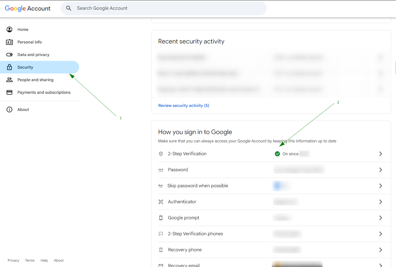 Make sure you’re logged into your Google account and that 2-Step Verification (2FA) is active.