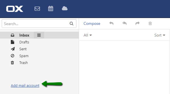 2. On the left side of the Inbox page, click on the Add mail account button: