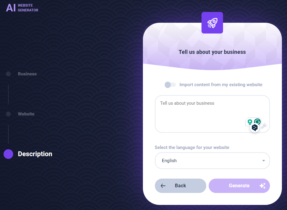 The AI Writer represents the text generator integrated with ChatGPT in the Sitejet Builder.