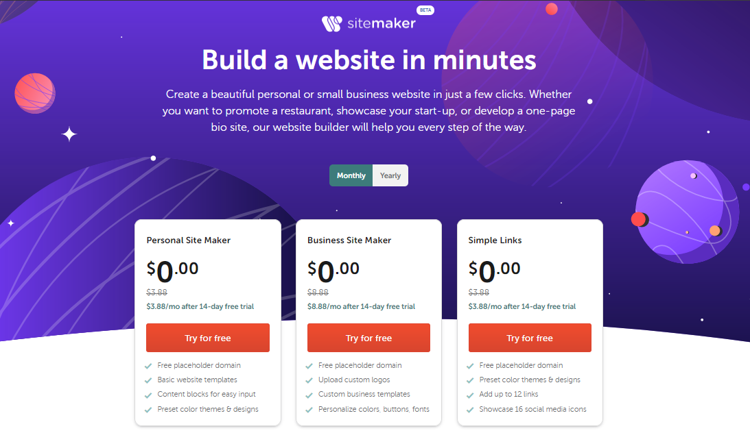 {"/api/v1/ncpl/currencies/getAll":{"body":[{"Name":"U.S. Dollar","Code":"USD","Symbol":"$","Separator":".","Culture":"en-US"},{"Name":"Euro","Code":"EUR","Symbol":"€","Separator":",","Culture":"en-US"},{"Name":"British Pound","Code":"GBP","Symbol":"£","Separator":".","Culture":"en-US"},{"Name":"Canadian Dollars","Code":"CAD","Symbol":"C$","Separator":".","Culture":"en-US"},{"Name":"Australian Dollars","Code":"AUD","Symbol":"A$","Separator":".","Culture":"en-US"},{"Name":"Indian Rupees","Code":"INR","Symbol":"Rs","Separator":".","Culture":"en-US"},{"Name":"China Yuan RMB","Code":"CNY","Symbol":"¥","Separator":".","Culture":"en-US"}],"status":200,"statusText":"OK"},"/api/v1/ncpl/usermanagement/uiuser/getHeaderUserInfo:\"{\\\"hideSupportPin\\\":true}\"":{"body":{"__ctxId":"E5B0CC71B88346C092729280346EED26","__isError":true,"__errorType":"Nc.Platform.Abstractions.UnauthorizedException","Http_WWW_Authenticate":"Bearer","StatusCode":"Unauthorized","LogLevel":3,"Message":"","InnerException":null,"HelpLink":null,"Source":"Nc.Security.Middleware"},"status":401,"statusText":"Unauthorized"},"/api/v1/ncpl/cart/user/getShoppingCartSummary:\"{\\\"finalTotalOnly\\\":true}\"":{"body":null,"status":200,"statusText":"OK"}}{"/api/v1/ncpl/simplekb/getarticle:\"{\\\"articleId\\\":10755,\\\"categoryId\\\":2298}\"":{"body":{"Id":10755,"FriendlyId":"","ArticleTypeId":0,"Title":"How to use Site Maker","ArticleName":"How to use Site Maker","ArticleSummary":null,"PreponedSummary":false,"Approved":true,"Body":"DQoJCTxkaXY+DQoJCQkJPGI+T3ZlcnZpZXc8L2I+DQoJCTwvZGl2Pg0KCQk8ZGl2Pg0KCQkJCTxiPg0KCQkJCQkJPGJyIC8+DQoJCQkJPC9iPg0KCQk8L2Rpdj4NCgkJPGRpdj5TaXRlIE1ha2VyIGlzIGEgd2Vic2l0ZS1idWlsZGluZyBhcHBsaWNhdGlvbiB0aGF0IGFsbG93cyBjcmVhdGluZyBiYXNpYyBwZXJzb25hbCB3ZWJzaXRlcyBpbiBhIHNpbXBsZSwgZ3VpZGVkIHN0ZXAtYnktc3RlcCB3YXkgd2l0aG91dCB0b3VjaGluZyBhIGxpbmUgb2YgY29kZS7CoDwvZGl2Pg0KCQk8ZGl2PlNpdGUgTWFrZXIgaGFzIGJlZW4gZGVzaWduZWQgZXNwZWNpYWxseSBmb3IgdGhvc2Ugd2l0aCBubyBleHBlcmllbmNlIG9mIGJ1aWxkaW5nIGEgd2Vic2l0ZS4gVGhlIHVuaXF1ZSBidWlsZCBwcm9jZXNzIGFuZCBlYXN5LXRvLXVzZSBibG9ja3MgZW5zdXJlIGFueW9uZSBjYW4gZ2V0IGEgc2l0ZSB1cCBhbmQgcnVubmluZyBpbiBubyB0aW1lLjwvZGl2Pg0KCQk8ZGl2Pg0KCQkJCTxiciAvPg0KCQk8L2Rpdj4NCgkJPGRpdj5Gb3IgU2l0ZSBNYWtlciwgd2Ugb2ZmZXIgPGI+UGVyc29uYWw8L2I+LMKgIDxiPkJ1c2luZXNzPC9iPiwgYW5kIDxiPlNpbXBsZSBMaW5rczwvYj4gc3Vic2NyaXB0aW9ucyB3aXRoIDxiPm1vbnRobHkgPC9iPmFuZCA8Yj5hbm51YWwgPC9iPmJpbGxpbmcgY3ljbGVzLjwvZGl2Pg0KCQk8ZGl2Pg0KCQkJCTxiciAvPg0KCQk8L2Rpdj4NCgkJPGRpdj4NCgkJCQk8aW1nIGNsYXNzPSJrYi1pbWFnZSIgc3JjPSJodHRwczovL05hbWVjaGVhcC5zaW1wbGVrYi5jb20vU2l0ZUNvbnRlbnRzLzItN0MyMkQ1MjM2QTQ1NDNFQjgyN0YzQkQ4OTM2RTE1M0UvbWVkaWEvTkNfU2l0ZV9NYWtlcl8xLnBuZyIgLz4NCgkJPC9kaXY+DQoJCTxiciAvPkN1cnJlbnRseSwgb25seSBOYW1lY2hlYXAgZG9tYWlucyBhcmUgc3VwcG9ydGVkIHdpdGggU2l0ZSBNYWtlci4gSG9zdCByZWNvcmRzIGFyZSBzZXQgdXAgYXV0b21hdGljYWxseSBmb3IgZG9tYWluIG5hbWVzIHBvaW50ZWQgdG8gPGI+QmFzaWNETlMgPC9iPmFuZCA8Yj5QcmVtaXVtRE5TPC9iPi4gSWYgYSBkb21haW4gbmFtZSBwdXJjaGFzZWQgd2l0aCBOYW1lY2hlYXAgdXNlcyBjdXN0b20gbmFtZXNlcnZlcnMsIGhvc3QgcmVjb3JkcyBzaG91bGQgYmUgY3JlYXRlZCBtYW51YWxseS48YnIgLz48YnIgLz5UaGUgZG9tYWluIG5hbWUgaXMgY29uZmlndXJlZCBhdXRvbWF0aWNhbGx5IGFmdGVyIGJlaW5nIHNlbGVjdGVkIGluc2lkZSB0aGUgYXBwbGljYXRpb24uIEluIGNhc2UgYW55dGhpbmcgZ29lcyB3cm9uZywgdGhlIGZvbGxvd2luZyByZWNvcmRzIGNhbiBiZSBjcmVhdGVkIG1hbnVhbGx5OjxiciAvPjxpPjxiciAvPlR5cGU6IEEgUmVjb3JkIHwgSG9zdDogQCB8IFZhbHVlOiA1NC4yMDMuMjI4LjM4wqDCoDxiciAvPlR5cGU6IENOQU1FIFJlY29yZCB8IEhvc3Q6IHd3dyB8IFZhbHVlOiBkbnMudmlzdWFsLmNvbcKgwqA8L2k+PGJyIC8+PGJyIC8+PGJyIC8+PGRpdj48Yj5HZXR0aW5nIHN0YXJ0ZWQgLSBTdGFuZGFyZCB2ZXJzaW9uPC9iPjwvZGl2PjxkaXY+PGI+PGJyIC8+PC9iPjwvZGl2PjxkaXY+U3RhbmRhcmQgKFBlcnNvbmFsKSB2ZXJzaW9uIGFsbG93cyBjcmVhdGluZyBhIHNpbXBsZSB3ZWJzaXRlIGJ5IHBpY2tpbmcgYXZhaWxhYmxlIHRlbXBsYXRlcyBhbmQgY3VzdG9taXppbmcgdGhlbSBmdXJ0aGVyLiBUaGUgZmluYWwgcmVzdWx0IGxvb2tzIGxpa2UgYSBvbmUtcGFnZSBzaXRlIG9mIHRoZSByb2xsIHR5cGUgKHRoZSBvbmUgeW91IHNob3VsZCBzY3JvbGwgZG93biBmb3IgaW5mb3JtYXRpb24pLjwvZGl2PjxkaXY+PGJyIC8+PC9kaXY+MSkgRmlyc3Qgc3RlcHMuIEluZGljYXRpbmcgYmFzaWMgaW5mbzxiciAvPjxiciAvPjxkaXY+QXQgdGhlIHN0YWdlIG9mIHB1cmNoYXNpbmcgYSBzdWJzY3JpcHRpb24sIHlvdSB3aWxsIGJlIGFza2VkIHRvIHByb3ZpZGUgYW4gZW1haWwgYWRkcmVzczo8L2Rpdj48ZGl2PjxiciAvPjwvZGl2PjxkaXY+PGltZyBjbGFzcz0ia2ItaW1hZ2UiIHNyYz0iaHR0cHM6Ly9OYW1lY2hlYXAuc2ltcGxla2IuY29tL1NpdGVDb250ZW50cy8yLTdDMjJENTIzNkE0NTQzRUI4MjdGM0JEODkzNkUxNTNFL21lZGlhL05DX1NpdGVfTWFrZXJfMi5wbmciIC8+PC9kaXY+PGJyIC8+PGRpdj5EdXJpbmcgdGhlIG5leHQgc3RlcCwgeW91IHNob3VsZCBzZWxlY3QgdGhlIG1haW4gZ29hbHMgb2YgdGhlIGRlc2lyZWQgd2Vic2l0ZS4gVGhlIGdvYWxzIHJlcHJlc2VudCBjb250ZW50IHNlY3Rpb25zIHRoYXQgd291bGQgYmUgYWRkZWQgdG8gdGhlIHdlYnNpdGUgdGVtcGxhdGUgYSBiaXQgbGF0ZXIuIEl0J3MgcG9zc2libGUgdG8gc2VsZWN0IHRoZW0gYWxsOjwvZGl2PjxkaXY+PGJyIC8+PC9kaXY+PGRpdj48aW1nIGNsYXNzPSJrYi1pbWFnZSIgc3JjPSJodHRwczovL05hbWVjaGVhcC5zaW1wbGVrYi5jb20vU2l0ZUNvbnRlbnRzLzItN0MyMkQ1MjM2QTQ1NDNFQjgyN0YzQkQ4OTM2RTE1M0UvbWVkaWEvTkNfU2l0ZV9NYWtlcl8zLnBuZyIgLz48L2Rpdj48YnIgLz48ZGl2Pk9uZSBtb3JlIHN0ZXAgZm9yIGNvbGxlY3RpbmcgeW91ciBpbmZvcm1hdGlvbi4gSXQncyBhbHNvIHBvc3NpYmxlIHRvIHVwbG9hZCBhIGxvZ28gb3IgcGhvdG8uIDxiPlJlcXVpcmVtZW50cyB0byB0aGUgaW1hZ2U8L2I+OiBsZXNzIHRoYW4gNSBNQjsgLjxpPlBORzwvaT4sIC48aT5HSUYgPC9pPmFuZCAuPGk+SlBFRyA8L2k+KC48aT5KUEc8L2k+KSBmb3JtYXRzOjwvZGl2PjxkaXY+PGJyIC8+PC9kaXY+PGRpdj48aW1nIGNsYXNzPSJrYi1pbWFnZSIgc3JjPSJodHRwczovL05hbWVjaGVhcC5zaW1wbGVrYi5jb20vU2l0ZUNvbnRlbnRzLzItN0MyMkQ1MjM2QTQ1NDNFQjgyN0YzQkQ4OTM2RTE1M0UvbWVkaWEvTkNfU2l0ZV9NYWtlcl80LnBuZyIgLz48L2Rpdj48YnIgLz5IZXJlLCBpdCdzIHBvc3NpYmxlIHRvIGFkZCBsaW5rcyB0byBzb2NpYWwgbmV0d29ya3M6PGJyIC8+PGJyIC8+PGltZyBjbGFzcz0ia2ItaW1hZ2UiIHNyYz0iaHR0cHM6Ly9OYW1lY2hlYXAuc2ltcGxla2IuY29tL1NpdGVDb250ZW50cy8yLTdDMjJENTIzNkE0NTQzRUI4MjdGM0JEODkzNkUxNTNFL21lZGlhL05DX1NpdGVfTWFrZXJfNS5wbmciIC8+PGJyIC8+PGJyIC8+PGJyIC8+MikgQnVpbGRpbmcgYSB3ZWJzaXRlPGJyIC8+PGJyIC8+PGRpdj5BdCB0aGlzIHN0ZXAsIGEgc2V0IG9mIHRlbXBsYXRlcyBpcyBhbHJlYWR5IGdlbmVyYXRlZCBhbmQgcHJvdmlkZWQgdG8geW91OjwvZGl2PjxkaXY+PGJyIC8+PC9kaXY+PGRpdj48aW1nIGNsYXNzPSJrYi1pbWFnZSIgc3JjPSJodHRwczovL05hbWVjaGVhcC5zaW1wbGVrYi5jb20vU2l0ZUNvbnRlbnRzLzItN0MyMkQ1MjM2QTQ1NDNFQjgyN0YzQkQ4OTM2