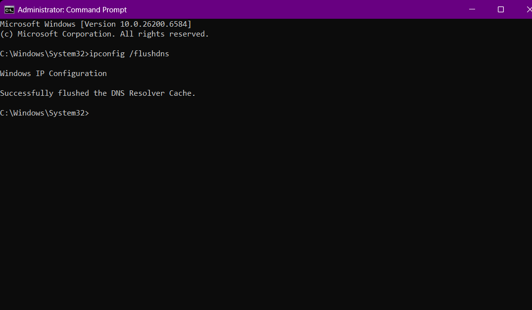 4. Once done, you will see the following message: Successfully flushed the DNS Resolver Cache.