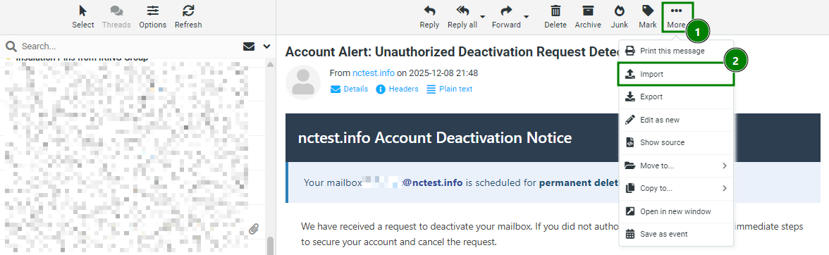 {"/api/v1/ncpl/currencies/getAll":{"body":[{"Name":"U.S. Dollar","Code":"USD","Symbol":"$","Separator":".","Culture":"en-US"},{"Name":"Euro","Code":"EUR","Symbol":"€","Separator":",","Culture":"en-US"},{"Name":"British Pound","Code":"GBP","Symbol":"£","Separator":".","Culture":"en-US"},{"Name":"Canadian Dollars","Code":"CAD","Symbol":"C$","Separator":".","Culture":"en-US"},{"Name":"Australian Dollars","Code":"AUD","Symbol":"A$","Separator":".","Culture":"en-US"},{"Name":"Indian Rupees","Code":"INR","Symbol":"Rs","Separator":".","Culture":"en-US"},{"Name":"China Yuan RMB","Code":"CNY","Symbol":"¥","Separator":".","Culture":"en-US"}],"status":200,"statusText":"OK"},"/api/v1/ncpl/usermanagement/uiuser/getHeaderUserInfo:\"{\\\"hideSupportPin\\\":true}\"":{"body":{"__ctxId":"4238B0105B544C43A2A225E5A75DB090","__isError":true,"__errorType":"Nc.Platform.Abstractions.UnauthorizedException","Http_WWW_Authenticate":"Bearer","StatusCode":"Unauthorized","LogLevel":3,"Message":"","InnerException":null,"HelpLink":null,"Source":"Nc.Security.Middleware"},"status":401,"statusText":"Unauthorized"},"/api/v1/ncpl/cart/user/getShoppingCartSummary:\"{\\\"finalTotalOnly\\\":true}\"":{"body":null,"status":200,"statusText":"OK"}}{"/api/v1/ncpl/simplekb/getarticle:\"{\\\"articleId\\\":9455,\\\"categoryId\\\":2226}\"":{"body":{"Id":9455,"FriendlyId":"","ArticleTypeId":3,"Title":"How to back up and restore emails in cPanel Webmail","ArticleName":"How to back up and restore emails in cPanel Webmail","ArticleSummary":null,"PreponedSummary":false,"Approved":true,"Body":"CQlJZiB5b3UgdXNlIGNQYW5lbCBlbWFpbCBmb3IgeW91ciBkb21haW4sIHlvdSBjYW4gPGI+PGEgaHJlZj0iI2V4cG9ydCI+YmFjayB1cCAoZXhwb3J0KTwvYT48L2I+IGFuZCA8Yj48YSBocmVmPSIjaW1wb3J0Ij5yZXN0b3JlIChpbXBvcnQpPC9hPjwvYj4geW91ciBlbWFpbHMgdXNpbmcgdGhlIFJvdW5kY3ViZSB3ZWIgaW50ZXJmYWNlLjxiciAvPjxiciAvPg0KDQpUaGVyZSBhcmUgc2V2ZXJhbCBvcHRpb25zIHRvIGFjY2VzcyB5b3VyIGNQYW5lbCBXZWJtYWlsIGludGVyZmFjZS4gWW91IGNhbiBjaGVjayBhbGwgb2YgdGhlbSA8YSBocmVmPSJodHRwczovL3d3dy5uYW1lY2hlYXAuY29tL3N1cHBvcnQva25vd2xlZGdlYmFzZS9hcnRpY2xlLmFzcHgvMTAzMTcvMzEvaG93LXRvLWFjY2Vzcy1jcGFuZWwtd2VibWFpbC8iPmhlcmU8L2E+LjxiciAvPjxiciAvPlRvIDxhIG5hbWU9ImV4cG9ydCI+YmFjayB1cCAoZXhwb3J0KTwvYT4gZW1haWxzIHRvIHlvdXIgbG9jYWwgY29tcHV0ZXIsIG9wZW4gdGhlIHJlcXVpcmVkIGVtYWlsIGFuZCBjbGljayBvbiB0aGUgPGI+TW9yZTwvYj4gaWNvbiBpbiB0aGUgYmFyIGFib3ZlIGFuZCBjbGljayBvbiA8Yj5FeHBvcnQ8L2I+OiA8YnIgLz48YnIgLz48aW1nIGNsYXNzPSIga2ItaW1hZ2UiIHNyYz0iaHR0cHM6Ly9OYW1lY2hlYXAuc2ltcGxla2IuY29tL1NpdGVDb250ZW50cy8yLTdDMjJENTIzNkE0NTQzRUI4MjdGM0JEODkzNkUxNTNFL21lZGlhL2V4cG9ydCBlbWFpbHNfMS5wbmciIC8+PGJyIC8+PGJyIC8+VGhlIGVtYWlsIHdpbGwgYmUgZG93bmxvYWRlZCB0byB5b3VyIGNvbXB1dGVyIGFzIGFuIC5lbWwgZmlsZS4gVGhpcyB0eXBlIG9mIGZpbGUgaXMgc3VwcG9ydGVkIGJ5IG1vc3Qgb2YgdGhlIGVtYWlsIHNlcnZpY2VzLCBzbyB5b3UgY2FuIGVhc2lseSByZXN0b3JlIHRoZW0gbGF0ZXIgb24gZGlmZmVyZW50IHNlcnZlcnMuIDxiciAvPjxiciAvPjxiPk5PVEU6PC9iPiBSb3VuZGN1YmUgZG9lcyBub3QgcHJvdmlkZSBjb252ZW5pZW50IGZ1bmN0aW9uYWxpdHkgdG8gZG93bmxvYWQgbWFueSBlbWFpbHMgYXQgb25jZS4gPGJyIC8+PGJyIC8+DQoNClRvIDxhIG5hbWU9ImltcG9ydCI+cmVzdG9yZSAoaW1wb3J0KTwvYT4gZW1haWxzIHVzaW5nIFJvdW5kY3ViZSwgY2xpY2sgb24gdGhlIHNhbWUgPGI+TW9yZTwvYj4gaWNvbiBpbiB0aGUgYmFyIGFib3ZlIGFuZCB0aGVuIG9uIDxiPkltcG9ydDwvYj46PGJyIC8+PGJyIC8+PGltZyBjbGFzcz0ia2ItaW1hZ2UiIHNyYz0iaHR0cHM6Ly9OYW1lY2hlYXAuc2ltcGxla2IuY29tL1NpdGVDb250ZW50cy8yLTdDMjJENTIzNkE0NTQzRUI4MjdGM0JEODkzNkUxNTNFL21lZGlhL2ltcG9ydCBlbWFpbHMucG5nIiAvPjxiciAvPjxiciAvPkFmdGVyIHRoaXMsIGNob29zZSB0aGUgYmFjayB1cCBmaWxlIHlvdSB3aXNoIHRvIGJlIGltcG9ydGVkIGFuZCBjbGljayA8Yj5JbXBvcnQ8L2I+OjxiciAvPjxiciAvPjxpbWcgY2xhc3M9ImtiLWltYWdlIiBzcmM9Imh0dHBzOi8vTmFtZWNoZWFwLnNpbXBsZWtiLmNvbS9TaXRlQ29udGVudHMvMi03QzIyRDUyMzZBNDU0M0VCODI3RjNCRDg5MzZFMTUzRS9tZWRpYS9pbXBvcnQgZW1haWxzXzIucG5nIiAvPjxiciAvPjxiciAvPk9uY2UgZG9uZSwgeW91IHdpbGwgZ2V0IGEgbm90aWZpY2F0aW9uIHRoZSBtZXNzYWdlcyBoYXZlIGJlZW4gc3VjY2Vzc2Z1bGx5IGltcG9ydGVkOjxiciAvPjxiciAvPjxpbWcgY2xhc3M9ImtiLWltYWdlIiBzcmM9Imh0dHBzOi8vTmFtZWNoZWFwLnNpbXBsZWtiLmNvbS9TaXRlQ29udGVudHMvMi03QzIyRDUyMzZBNDU0M0VCODI3RjNCRDg5MzZFMTUzRS9tZWRpYS9pbXBvcnQgZW1haWxzXzMucG5nIiAvPjxiciAvPjxiciAvPjxiciAvPlRoYXQncyBpdCE8YnIgLz48YnIgLz4NCsKgwqDCoMKgwqDCoMKgwqDCoMKgwqDCoMKgwqAgPGJyIC8+wqDCoMKgwqDCoMKgwqDCoMKgwqDCoMKgwqDCoMKgwqDCoMKgwqDCoMKgIE5lZWQgYW55IGhlbHA/IENvbnRhY3Qgb3VyIDxhIGhyZWY9Imh0dHBzOi8vd3d3Lm5hbWVjaGVhcC5jb20vaGVscC1jZW50ZXIvIj5IZWxwRGVzazwvYT48YnIgLz48YnIgLz48cD48L3A+","NewTillDate":null,"FeaturedTillDate":null,"ModifiedDateTime":"2025-12-16T11:26:49.0000000","LiveDateTime":"1754-02-02T00:00:00.0000000","CreatedDateTime":"2014-12-28T20:37:22.0000000","ApprovalDatetime":"2014-12-28T21:34:08.0000000","RequestCount":122053,"MarkedAsNew":false,"MarkedAsFeatured":false,"RatingValue":3,"CategoryPaths":[{"__type":"Nc:SimpleKB:Abstractions:Dtos:CategoryPathDto","Level":1,"CategoryId":93,"CategoryName":"Email service"},{"__type":"Nc:SimpleKB:Abstractions:Dtos:CategoryPathDto","Level":2,"CategoryId":2226,"CategoryName":"Email Migration"}],"AssociatedCategories":[{"CategoryId":2226,"CategoryName":"Email Migration","CategoryDisplayName":"Email serviceEmail Migration"}],"AssociatedTags":[{"TagId":64,"Tag":"cpanel"},{"TagId":1215,"Tag":" email"},{"TagId":1466,"Tag":" mail"},{"TagId":19666,"Tag":" backup"},{"TagId":19841,"Tag":" import"},{"TagId":19842,"Tag":" export"},{"TagId":20493,"Tag":" restore"},{"TagId":20530,"Tag":" webmail"},{"TagId":24180,"Tag":" horde"},{"TagId":24181,"Tag":" roundcube"}],"RelatedArticles":[{"ArticleId":9403,"PreferedCategoryId":2226,"ArticleTypeId":3,"ArticleName":"How to transfer emails to cPanel mail account using Outlook","ArticleTypeName":"How_To","Title":"How to transfer emails to cPanel mail account using Outlook","LiveDateTime":null,"ModifiedDateTime":"12/16/2021","MarkedAsNew":false,"MarkedAsFeatured":false},{"ArticleId":9404,"PreferedCategoryId":2226,"ArticleTypeId":3,"ArticleName":"How to transfer emails to cPanel mail account using Thunderbird","ArticleTypeName":"How_To","Title":"How to transfer emails to cPanel mail account using Thunderbird","LiveDateTime":null,"Modi