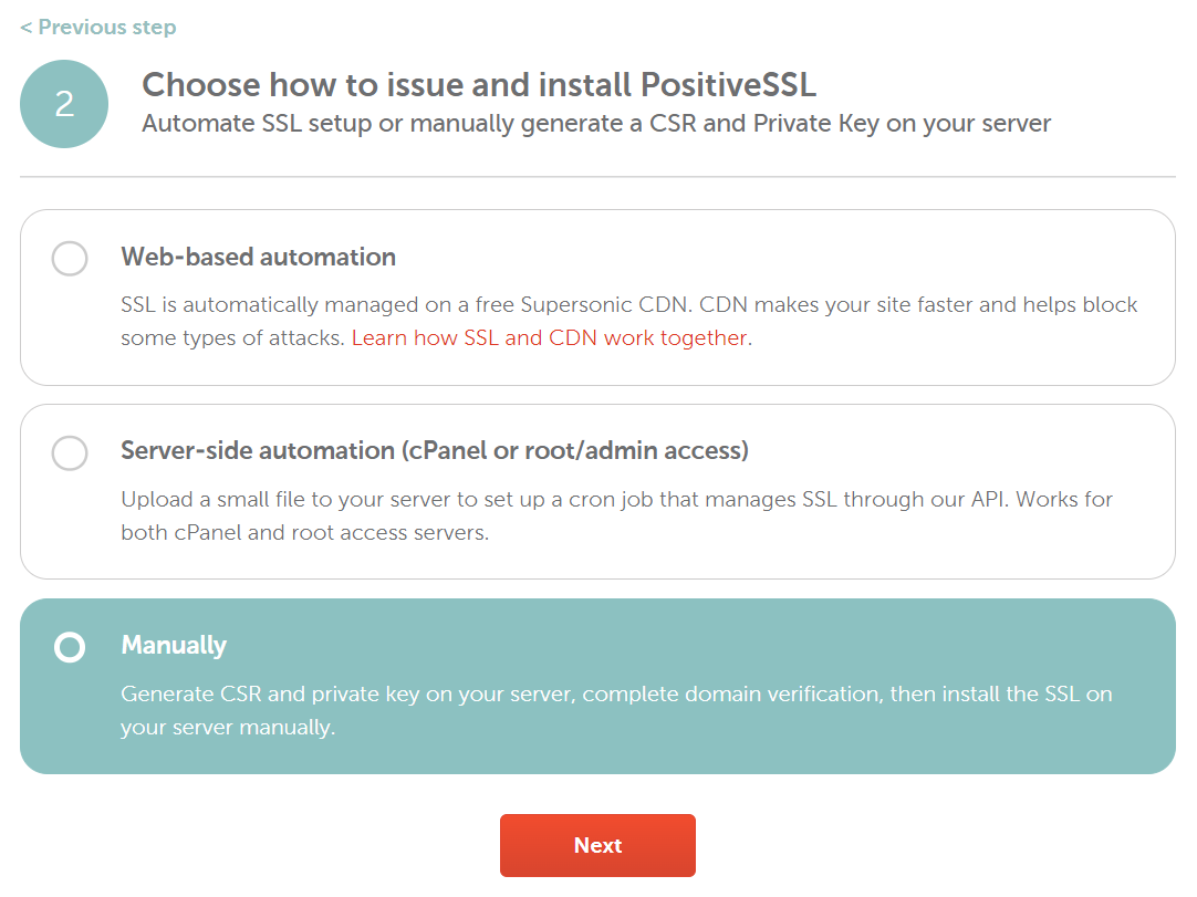 Before you start SSL activation, you'll first need to have a CSR code generated on your server by your hosting provider. You may also generate one yourself by following our guide to generating CSR code.